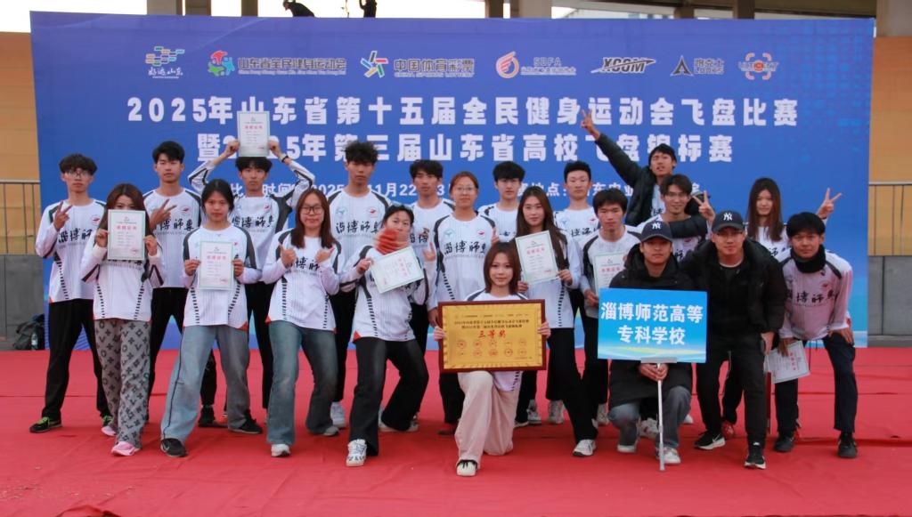 2025年11月23日,山东省第十五届全民健身运动会飞盘比赛暨第三届高校飞盘锦标赛在山东农业工程学院落下帷幕。淄博师专飞盘队经过持续的训练打磨与团队磨合,凭借扎实的竞技水平和默契的战术配合,最终荣获三等奖,实现了飞盘队在该项目上省级荣誉“从零到一”的历史性突破。