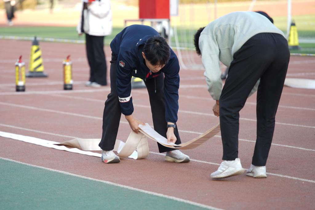 比赛设置“隐患排查”“水带连接攻坚”“灭火器实操”“绳结打法”“迷宫逃生”五大实战化项目,全方位检验参赛队伍的专业技能与团队协作能力。赛场上,我系队员精神抖擞、沉着应战:宿舍隐患排查环节中,大家凭借敏锐观察力,精准识别电器违规使用,尽显扎实的知识储备;随后的消防水带连接攻坚与灭火器实操环节,队员们动作规范利落,铺水带、接接口、灭明火一气呵成,每一个步骤都衔接流畅,充分展现日常训练的丰硕成果;紧接着的绳结打法比拼里,队员们手法娴熟,快速编结出符合实战要求的安全绳结;最后的迷宫逃生环节,队员们弯腰低姿、协同配合,快速穿越模拟火场障碍,展现出极强的应急反应能力。