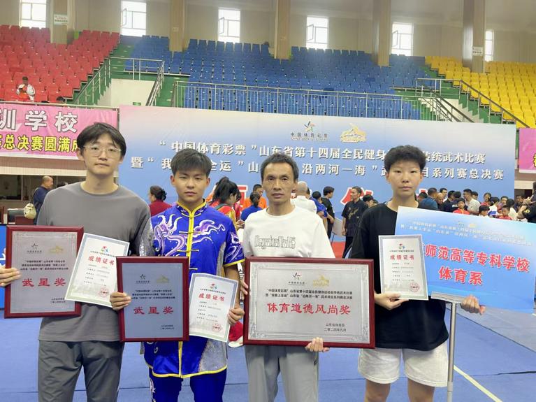 9月27日,由山东省体育局和山东省教育厅等9部门联合举办的“中国体育彩票”山东省第十四届全民健身运动会传统武术比赛暨“我要上全运”山东省“沿两河一海”武术项目系列赛总决赛圆满落幕,淄博师专武术队3名运动员在本次比赛中收获得了2个一等奖、2个二等奖、1个三等奖的好成绩,学校被组委会授予体育道德风尚奖。