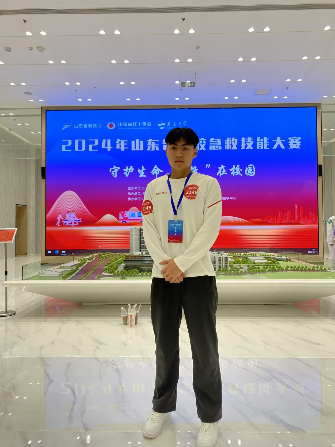 2024年11月14日-16日,由山东省教育厅和山东省红十字会联合举办的2024年山东省学校急救技能大赛在青岛大学举行。此次比赛由团委、校医院组织,选派李静茹作为指导老师,188点点学生刘牧岳、文旅学院学生李子茉代表学校参赛,取得了高校学生甲组(非医学大类专业学生)二等奖第一名的好成绩。