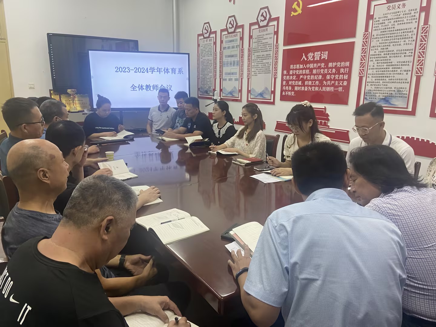 会上,相关科室分别就学校近期工作安排及有关规章制度、新学期教师教学任务安排、学生返校前后各项工作、新教师的生活和学习等方面做了安排并提出要求。副主任张树军分享了暑期学习心得,围绕体育教育专业建设、教师教学能力、教师专业化发展、教师基本功比赛等进行了交流,就近期的课程建设、科研工作、青教赛、教学能力比赛、体育活动设计与实施及健身指导、小学教学活动设计与实施等比赛工作进行了部署,鼓励青年教师要积极参加各级各类教学比赛活动,做到以赛促教,以赛促学、以赛促练。