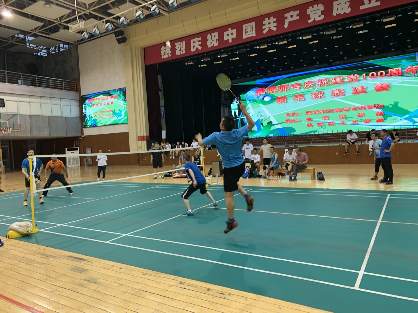 为了庆祝建党100周年,丰富我校教职工的文娱生活,加深同事间的交流团结。2021年6月30日,由体育教学部和马克思主义学院联合举办了一场别开生面羽毛球表演赛。来自全校各院系处室的羽毛球运动精英教师参加了比赛。